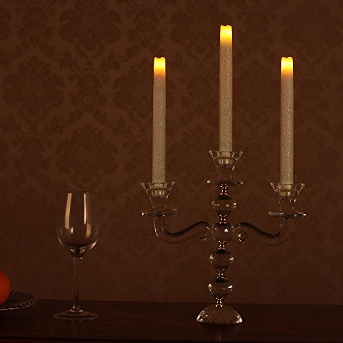 REALISTIC & SPECIFICATIONS: Made from real high quality wax, feels and looks like a real candle. Blinking slowly, like a real wax candle flame. 9 inches high. Package of 3.3 different sizes silicone holder adapter including, fiting for most candle holder.Runs on 2x AA batteries (not included). A exellent substitute to traditional taper candle.