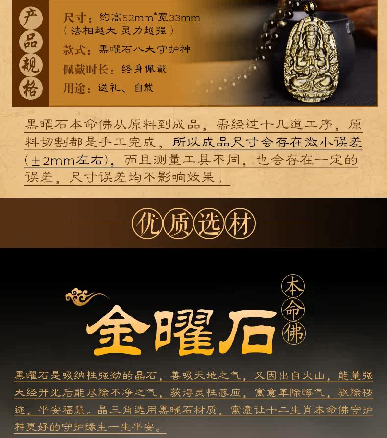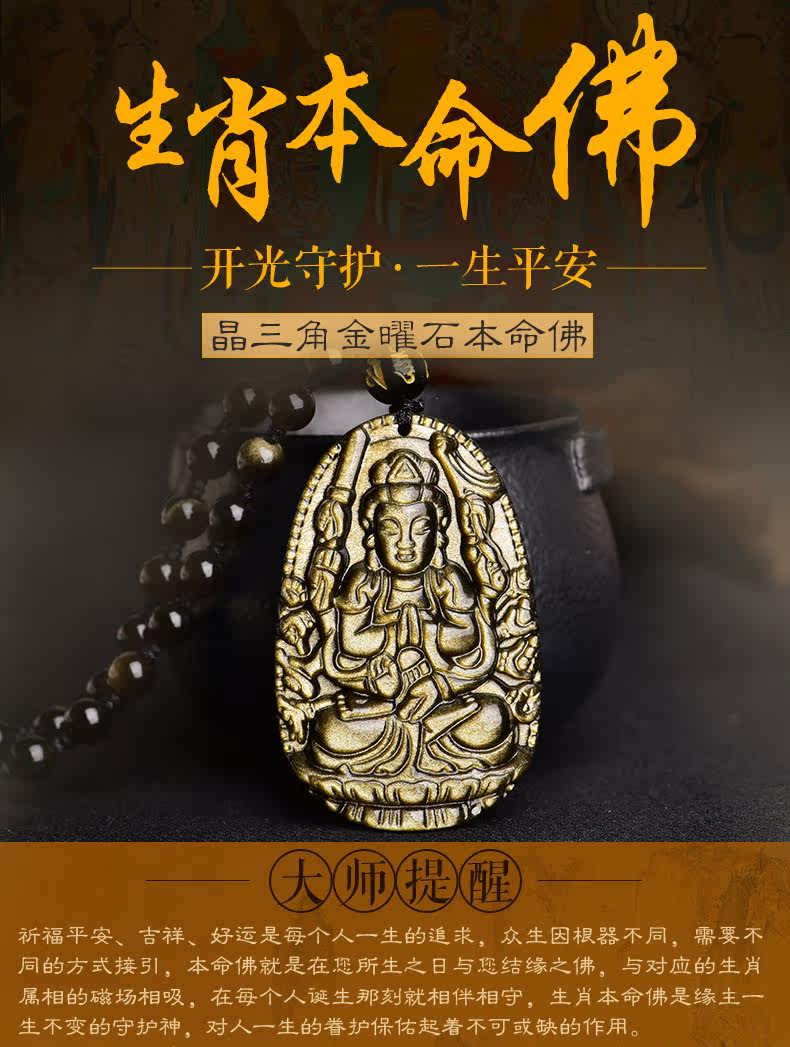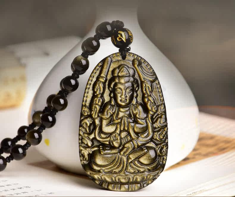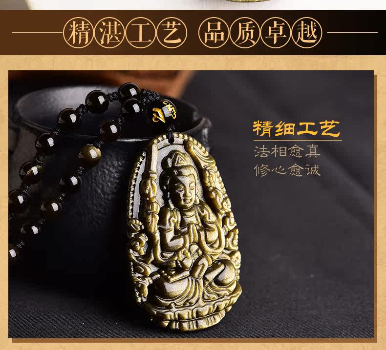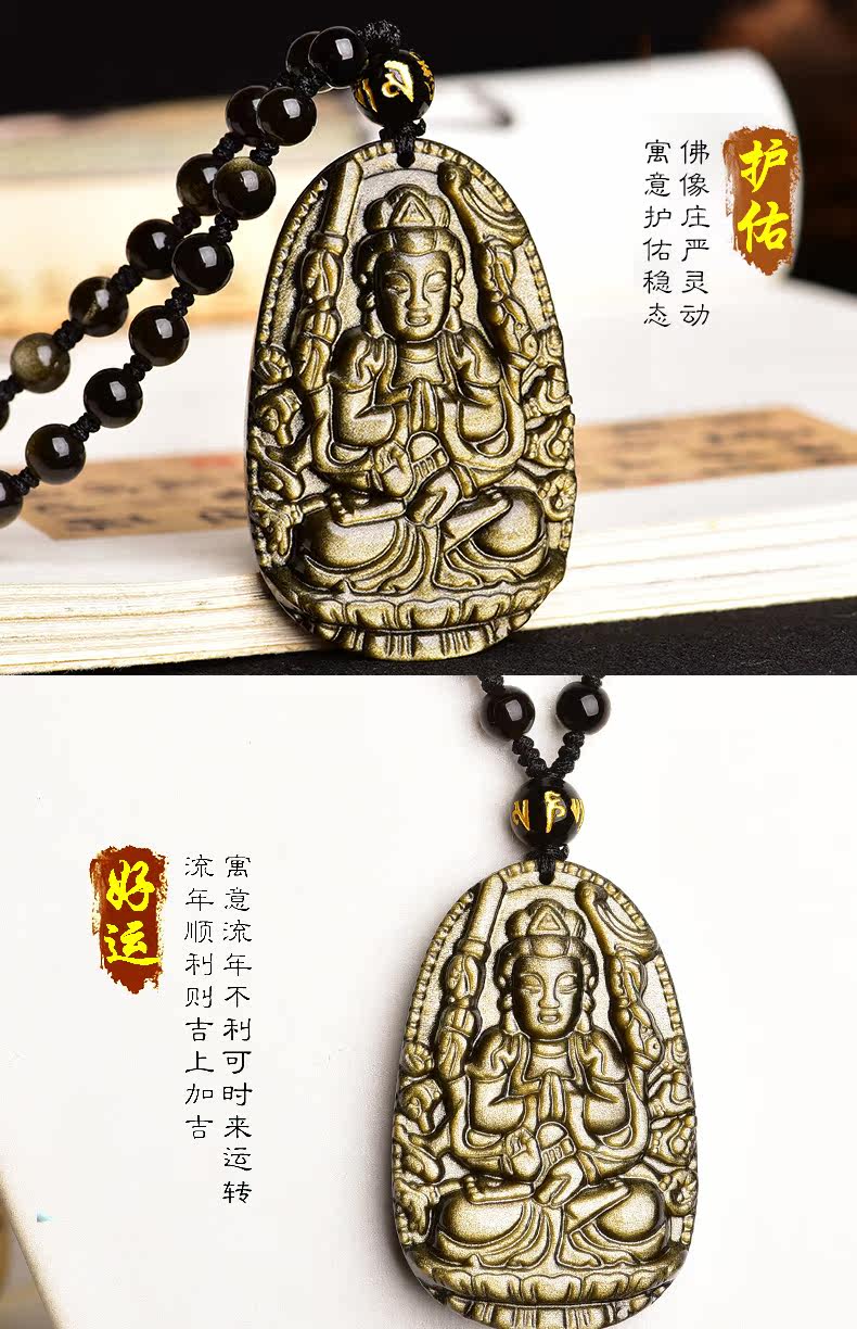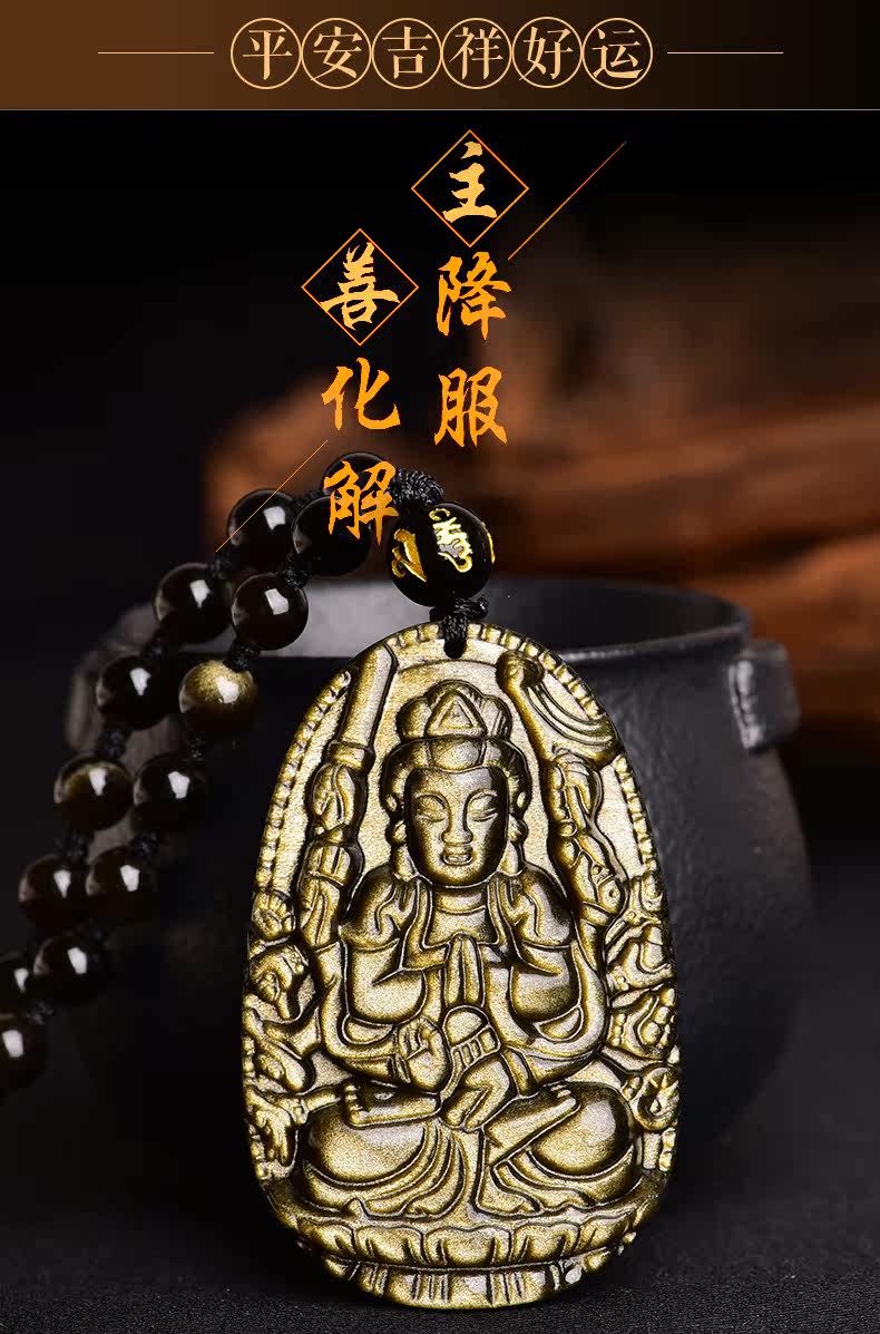 开光天然金曜石千手观音菩萨吊坠生肖属鼠守护神本命佛男女款项链