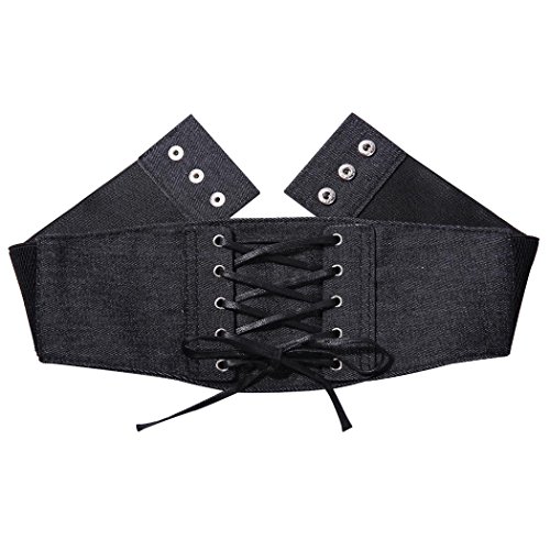 Product Description Women's Vintage Denim lace up waistband Extra Wide Cinch Made of denmin and comfort-fit elastane belt . Fashion lace-up corset with metal stud button closure. Great accessory for the vintage chic elengance style