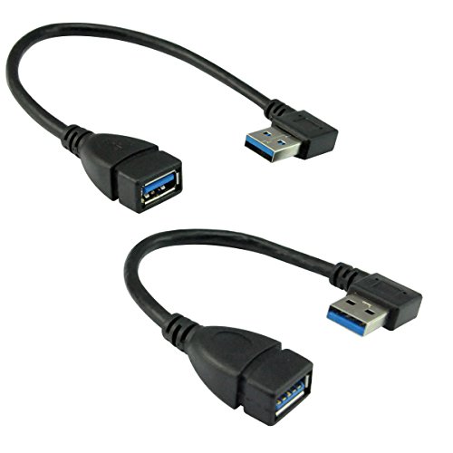 UCEC SHORT SuperSpeed USB 3.0 Male to Female Extension Cable, Left and Right Angle - Black (Pack of 2)