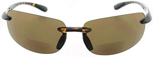 Island Life bifocal sunglasses are sleek and affordable, and a perfect option for those who don't want to spend hundreds of dollars on prescription sunglasses. With long distance viewing on top and reading magnification on the bottom, you'll never again experience the hassle of switching back and forth between your sunglasses and your readers when driving, golfing, boating, gardening, or practically any activity outdoors. Frames are made of TR-90 Memory Plastic that's extremely lightweight for all-day use and the lenses are shatter-resistant preventing flying debris from breaking your shades. The sleek wrapping frames look stylish and handsome one just about any outdoor enthusiast.