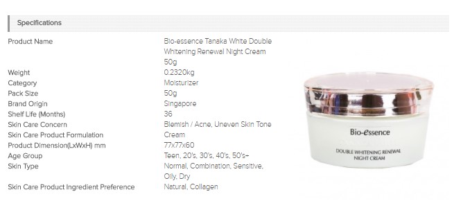 Bio-Essence Tanaka White Double Whitening Renewal Night Cream 50g