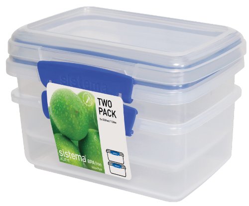 Sistema Klip It Collection Rectangle Food Storage Containers, 33.8 Ounce/ 4.2 Cup Each, Set of 2