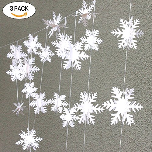 - Size: each string decoration length of 9.8 feet, each string decoration is made up of the diameter of 12cm / 10cm / 8cm snowflakes composition,4 each diameter,A total of 12 ,3 pack