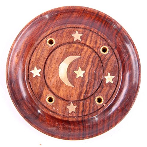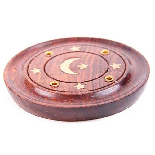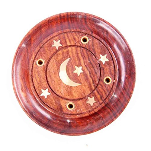 Valentine Day Special Gift, Wooden Incense Saucer Plate Holder Half Moon Design, incense sticks, Stick Plate, Stick Holder Brown Color Size 4 X 4 Inch