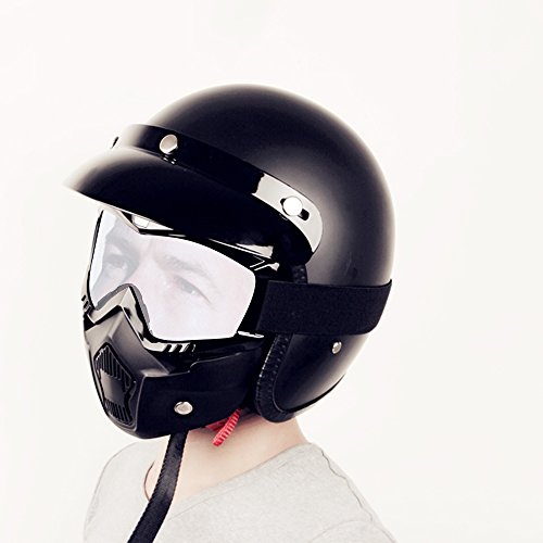 Motorcycle Helmet Riding Goggles Glasses With Removable Face Mask,Detachable Fog-proof Warm Goggles Mouth Filter Adjustable Non-slip Strap Vintage Harley Bullet Fight Motocross (white)