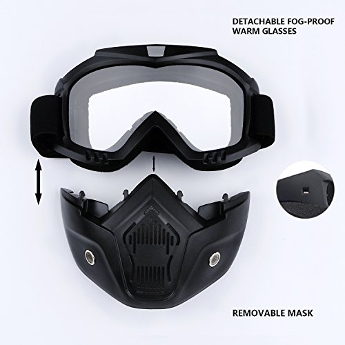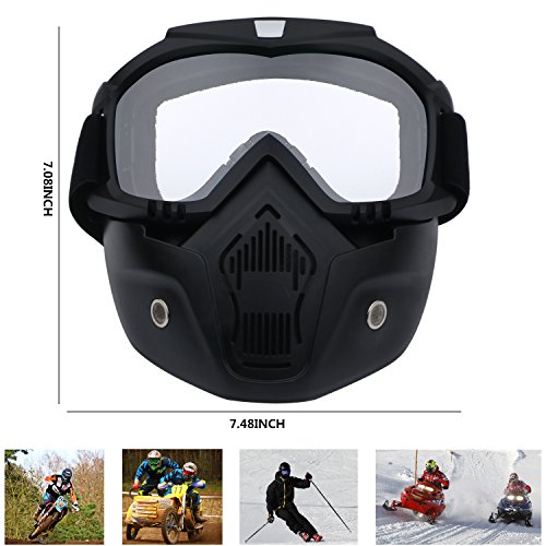 - ✔PROTECTION: With comfortable wide tight band and detachable goggles,it fits closely to your face around your eyes to protect you from water, wind, or dust. Clear lens gives you a wide view.