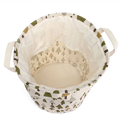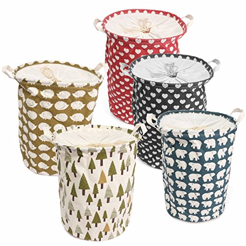 KINGSO Fabric Foldable Round Laundry Basket Hamper Closet Storage Bin Bag with Drawstring Cover 18 x 14 Inch