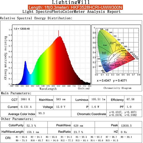 - Safe to use: CRI90, SMD3528-150LEDs, DC12V 12W 1Amp, 16.4 Feet (5 Meter) Roll. High intensity and definite reliability. Extremely low heat. It is touchable and safe to children.
