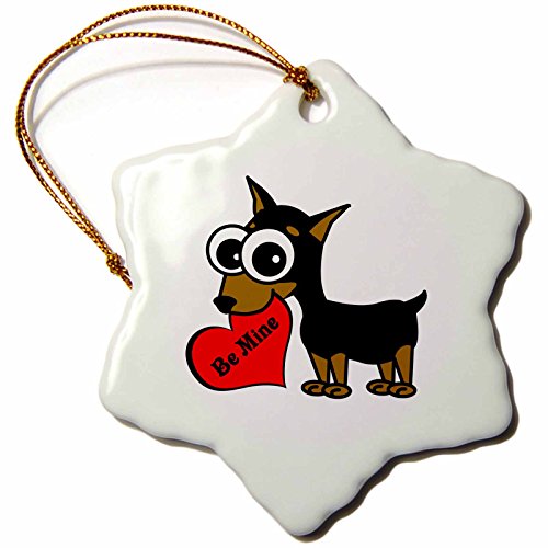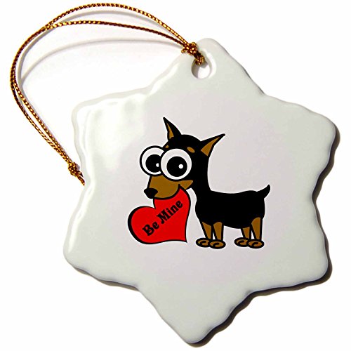 3dRose orn_6331_1 Cute Dog be Mine Heart Minpin Porcelain Snowflake Ornament, 3-Inch