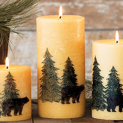 Product Description A Black Forest Decor Exclusive - Silk-screened bear and pine tree silhouettes add lodge appeal to the Frasier fir-scented paraffin wax Large Black Bear Balsam Pine Candle. Measures 4"Dia. x 8"H. ~ 0