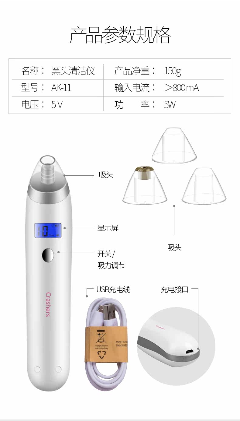 Crashers/傲客 吸黑头神器电动吸毛孔清洁器去黑头粉刺美容洁面仪