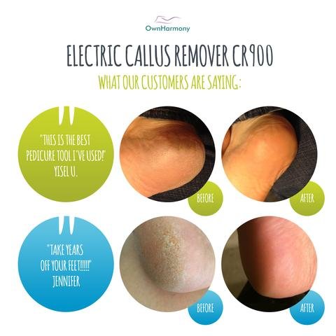 FATHER'S DAY SALE - This Week Only! Buy 2 Own Harmony Electric Callus Remover, Save 15% Enter code SALECR15 at checkout. PROFESSIONAL RESULTS: Tired of scrubbing your feet with grater-like tools? With the Own Harmony electric callous remover, you'll say good-bye to pumice stone and hello to your favorite sandals! Pamper your feet with spa-like rechargeable pedicure in the comfort of your home. Watch years of callused skin give way to baby-soft skin in just minutes!