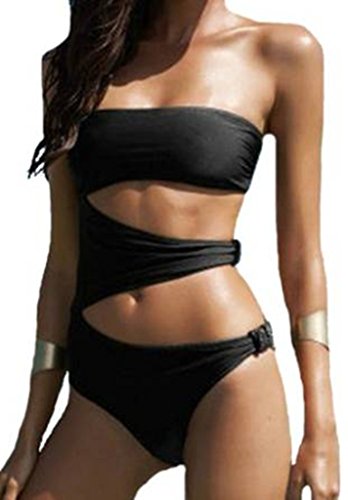 Title : Ayliss Women's Black One Piece Padded Bikini Cut out Monokini Swimwear,L