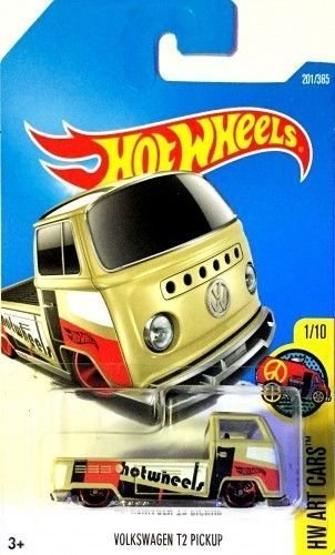 -. Binding : Toy -. Brand : Hot Wheels -. EAN : 4893673139018 -. Feature : 1:64 scaled die-cast truck. / Tan with black bed and red, black, and white accent. / 1/10 in the 2017 HW Art Cars series. / 201/365 in the 2017 Hot Wheels line. -. IsAdultProduct : 0 -. Label : hw art cars -. Manufacturer : hw art cars -. MPN : 10106952 -. PackageQuantity : 1 -. PartNumber : 10106952 -. ProductGroup : Toy -. ProductTypeName : TOYS_AND_GAMES -. Publisher : hw art cars -. Studio : hw art cars -. Title : Hot Wheels 2017 HW Art Cars Volkswagen T2 Pickup 201/365, Tan