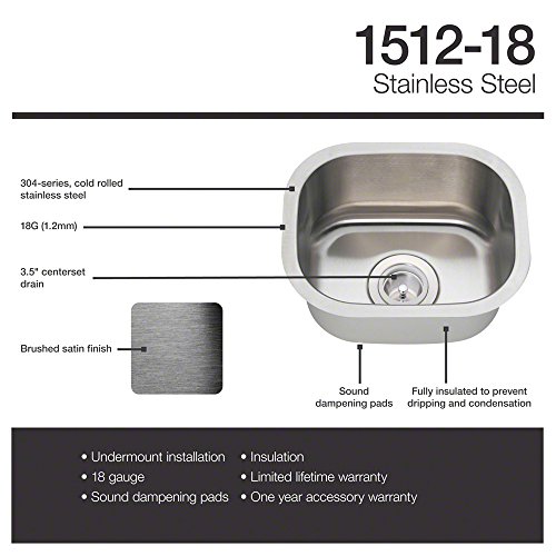 1512 18-Gauge Undermount Single Bowl Stainless Steel Bar Sink