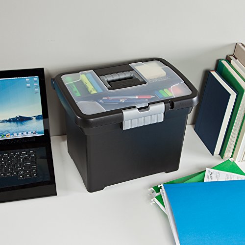 Sterilite 18719004 Portable File Box, Black with Clear Storage Lid and Titanium Handle and Latch, 4-Pack