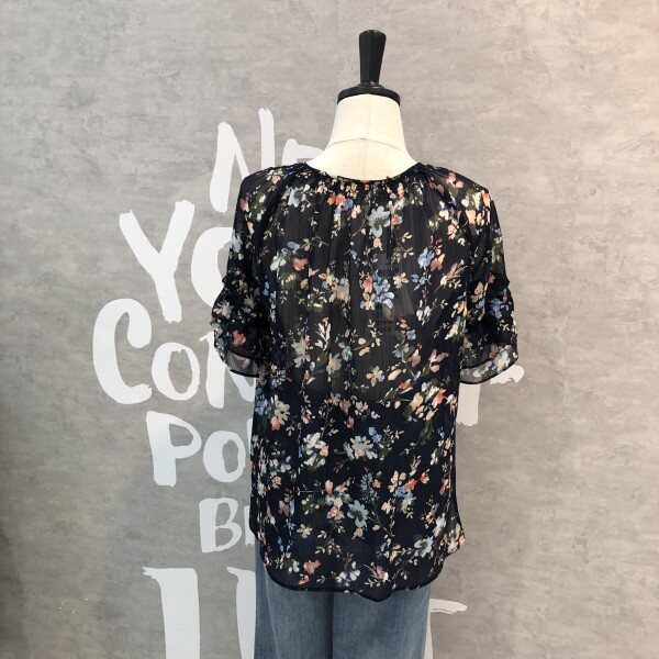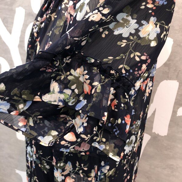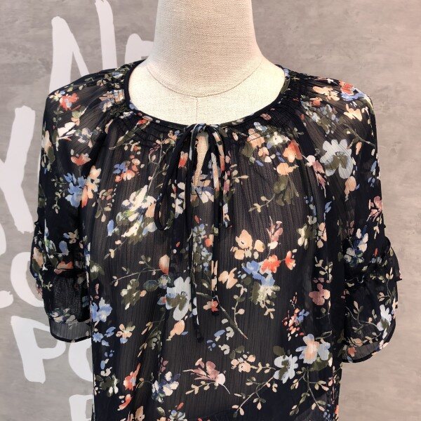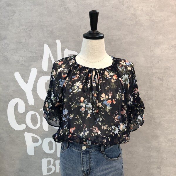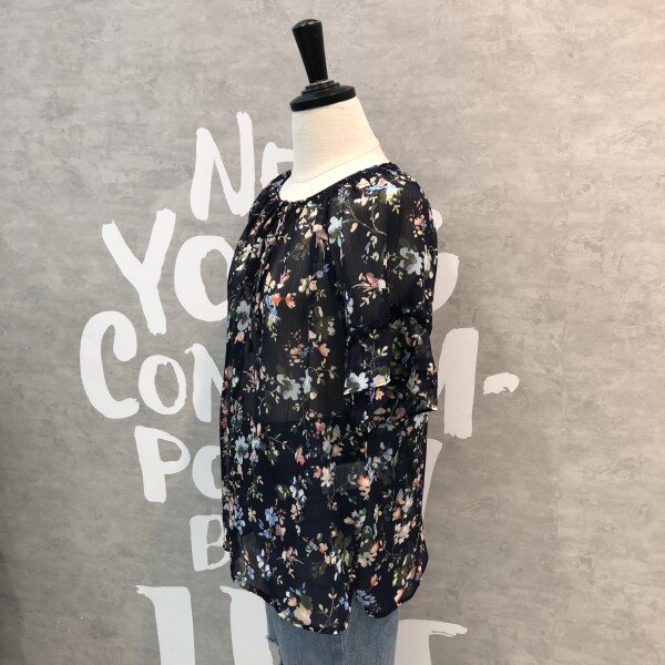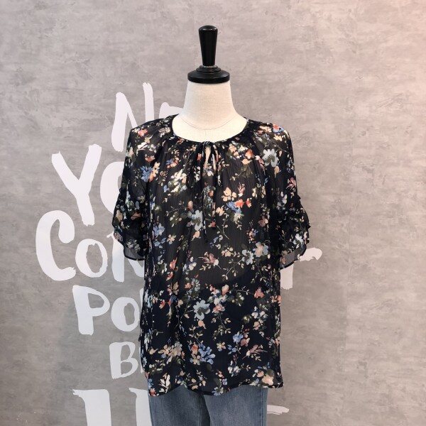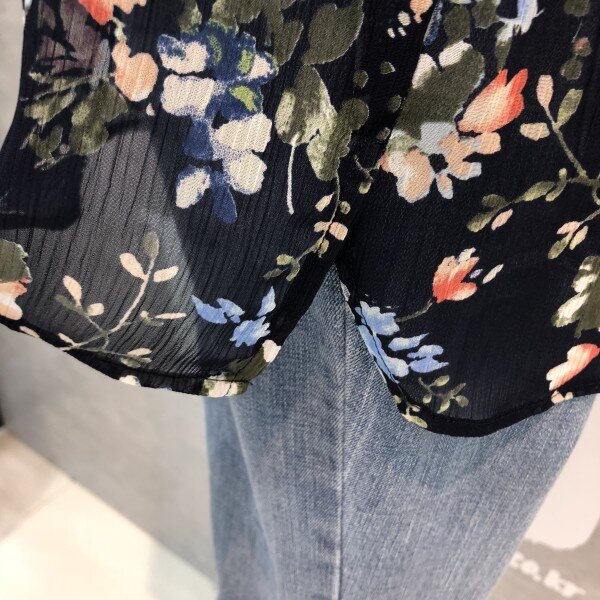 화사한 컬러감의 꽃프린트가 포인트되어 러블리하며 소매셔링과 수술디테일이 멋스러운 디자인의 블라우스입니다