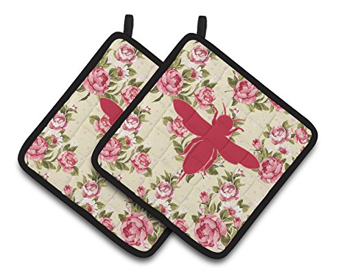 Caroline's Treasures Bee Shabby Chic Yellow Roses Pair of Pot Holders BB1057-RS-YW-PTHD, 7.5HX7.5W, Multicolor