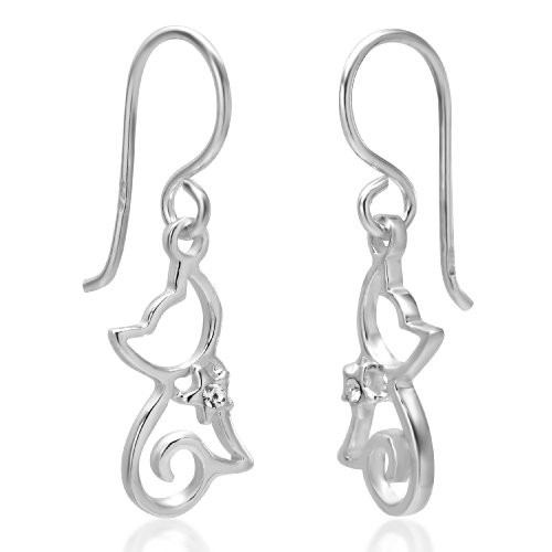 These adorable cat sterling silver earrings would be a wonderful addition to any wardrobe. The included black velvet pouch makes it the perfect gift for someone special or cat lover. Made from high quality .925 sterling silver and Cubic Zirconia stone at the neck.