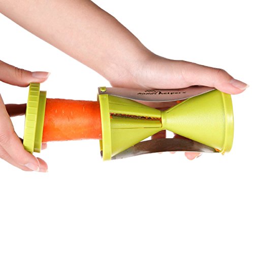 - Feature : 100 % Guaranteed Satisfaction- One of the top-talked-about and must-have gadget of the 21st century, this is ideal for anyone on a raw food, gluten-free, weight loss, paleo or low-carb diet. If you love pasta but can't eat wheat, this is for you and friends! / Features: This spiral slicer creates mounds of endless julienne strips of carrots, radishes, cucumbers and all kinds of firm vegetables. This handy gadget is constructed from high-quality plastic and stainless steel blades which slice with ease. The slicer features two different-sized spirals which able to create 2mm x 3mm thin strips for salads and 3.5mm x 5mm wide strips for pasta dishes. It can be cleaned very easily and is dishwasher-safe. / Constructed from high-quality plastic and stainless steel. Requires no assembly and comes with a turning cap that helps turning the veggies through the spiral slicer / Perfect for potatoes, carrots, cucumbers, zucchini, radishes, squash and so on. / Simple to keep clean. Ideal for garnishes in parties, birthday and any special event We will carefully check every item before shipment. The quality is guaranteed!