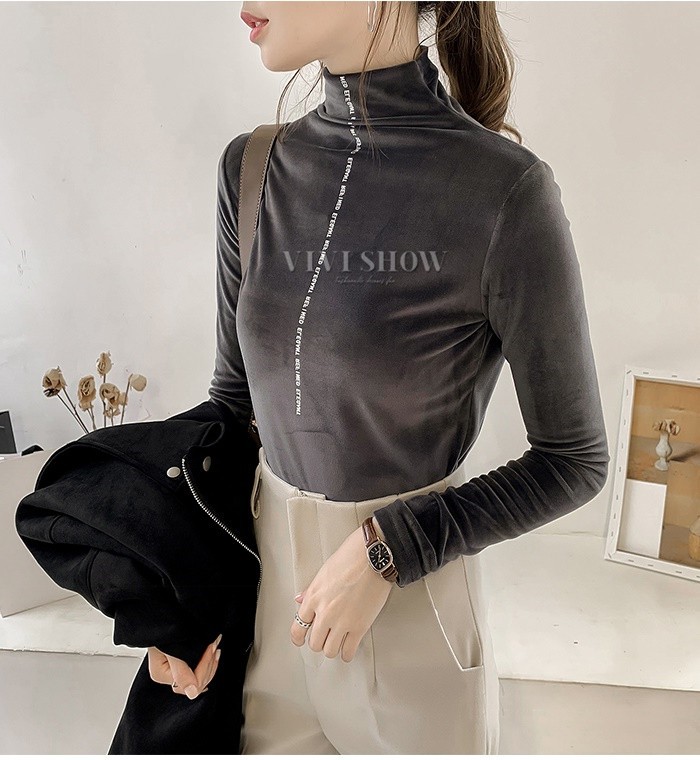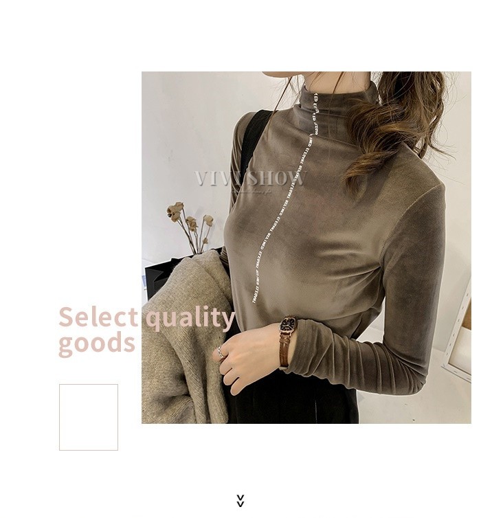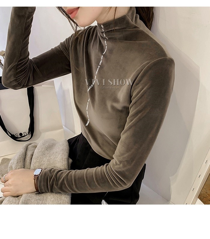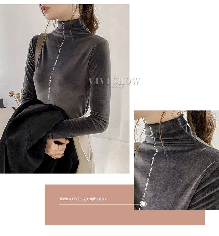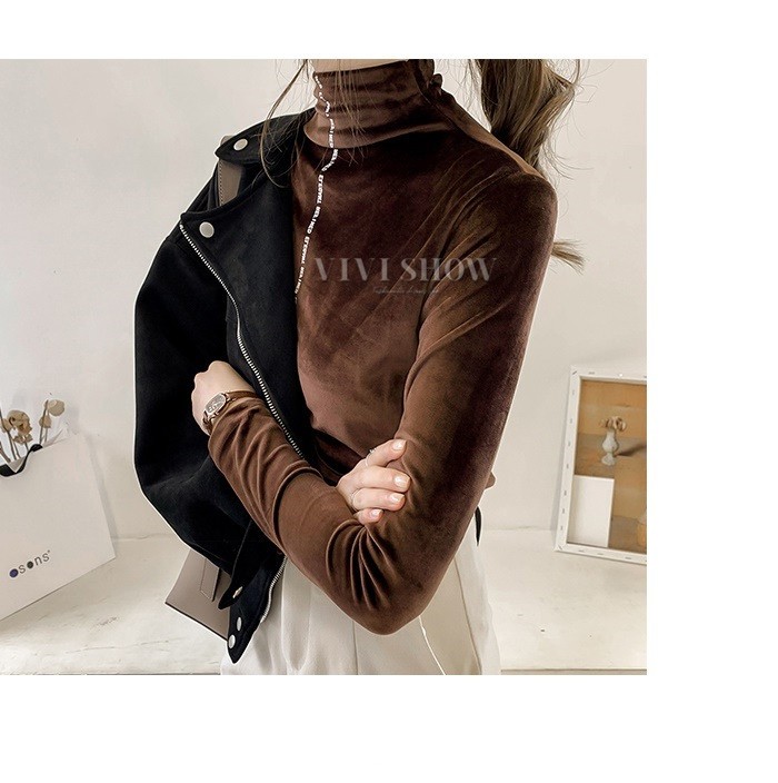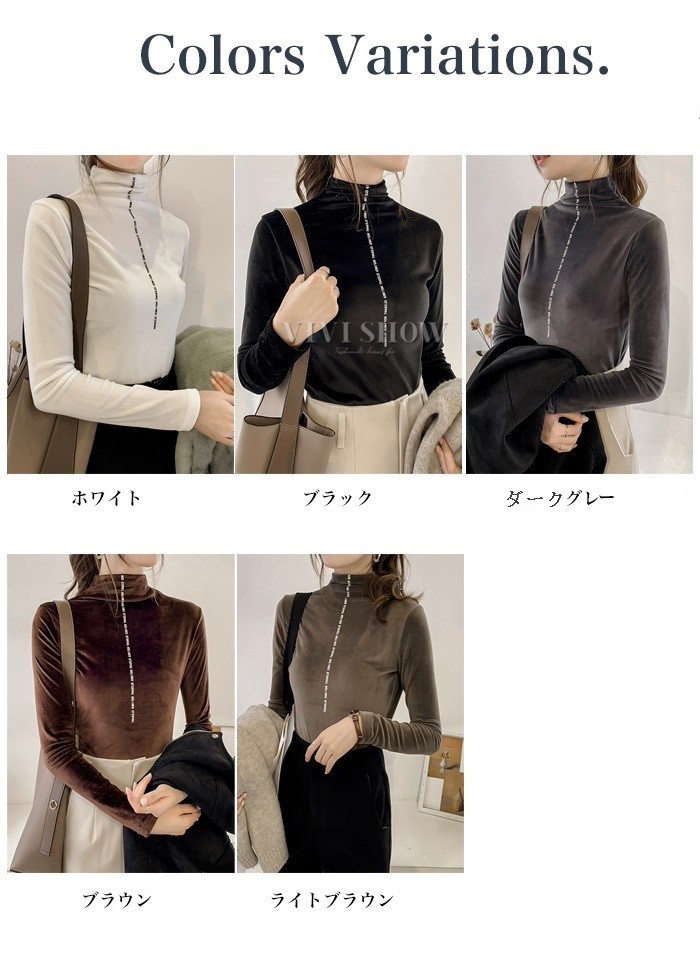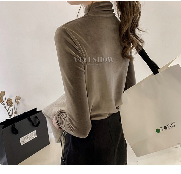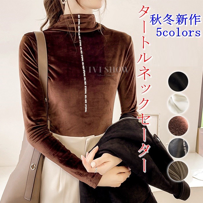 秋冬新作 ベロア トップス Tシャツ レディース 長袖 タートルネック5colors
