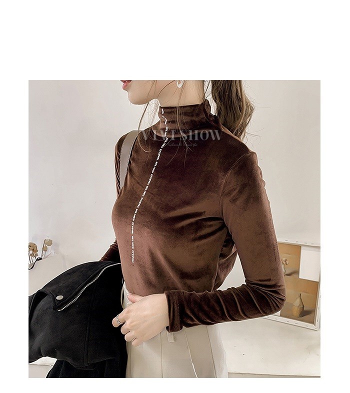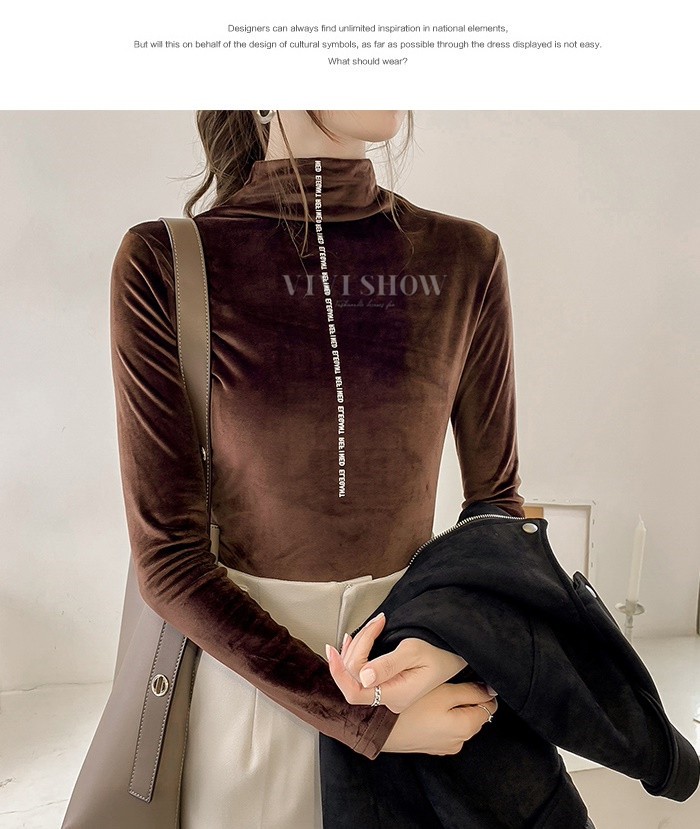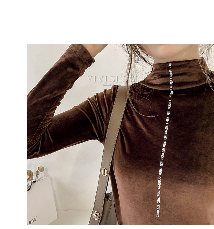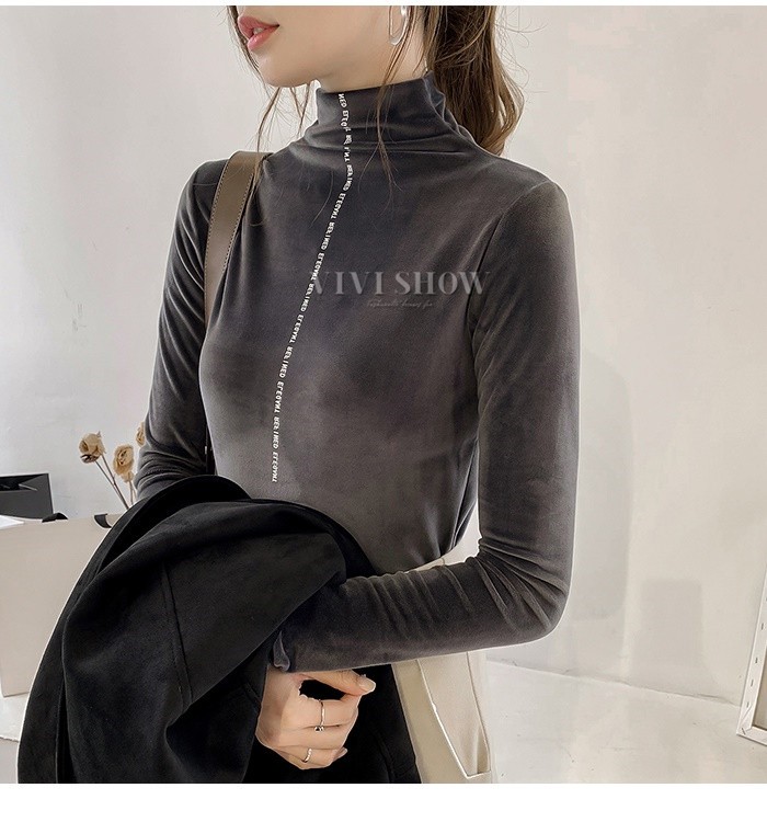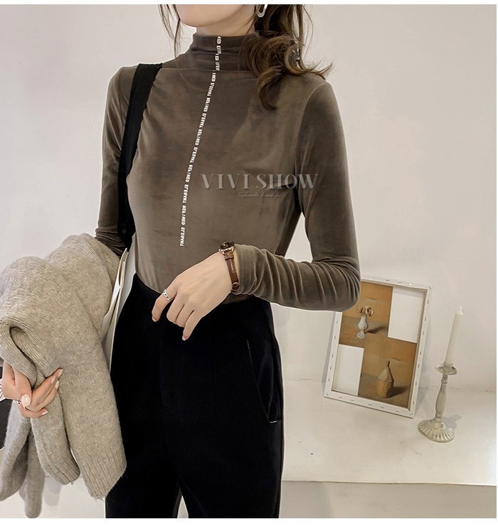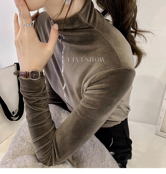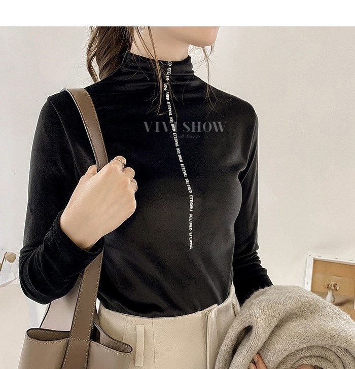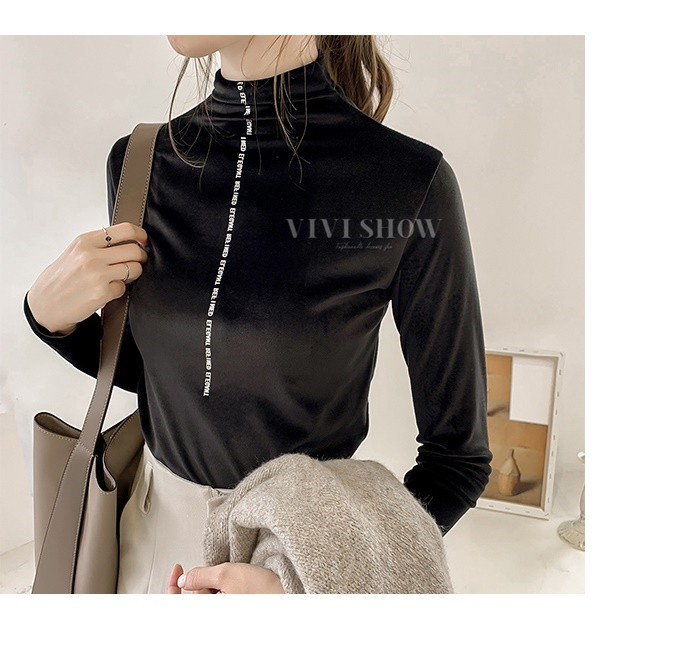 秋冬新作 ベロア トップス Tシャツ レディース 長袖 タートルネック5colors