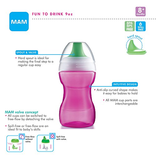-. Binding : Baby Product -. Brand : MAM -. Color : Boy -. Department : baby-boys -. EAN : 0845296055514 -. Feature : Includes a spill-free hard spout and detachable valve / The spill-free hard spout helps with the transition to a regular drinking cup / Detachable valve for a spill-free or free-flow option / Ergonomic shape easily fits little hands / Includes a dust cap that is spill-proof and protects from dirt -. Label : MAM -. Manufacturer : MAM -. Model : 5551-006-0-1 -. MPN : MAM-164 -. PackageQuantity : 1 -. PartNumber : MAM-164 -. ProductGroup : Baby Product -. ProductTypeName : BABY_PRODUCT -. Publisher : MAM -. Size : 9 Ounce -. Studio : MAM -. Title : MAM Learn to Drink Cup, Boy, 9 Ounces, 1-Count -. UPC : 845296055514