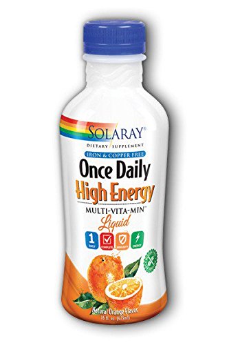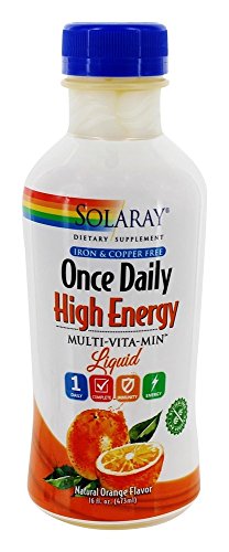 ReleaseDate : 2017-09-25 Studio : Chiropractors Buying Group Publisher : Chiropractors Buying Group Binding : Health and Beauty Product Description Solaray Once Daily High Energy Liquid Multivitamin is iron and copper free. Solaray Once Daily High Energy Liquid Multivitamin is a great-tasting citrus flavored, gluten-free, multivitamin mineral formula offering 23 key vitamins, minerals and lipotropic factors along with a food base of rose hips, carrot, acerola cherry and orange bioflavonoids. This iron-free and copper-free liquid multi is designed for certain individuals who have a restricted diet or have difficulty swallowing pills. Just one tablespoon per day offers immune support with over 400% Daily Value of Vitamin C and 250% Daily Value of Vitamin D-3 plus high potency of key B-Vitamins to sustain healthy energy levels. 0