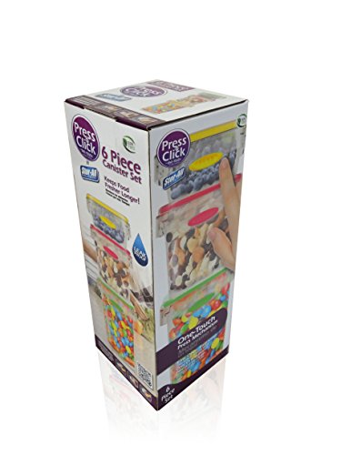 Stor-All Solutions PNC378SQ6/6 6 Piece Press N Click Food Container Set, Clear/Grey Trim