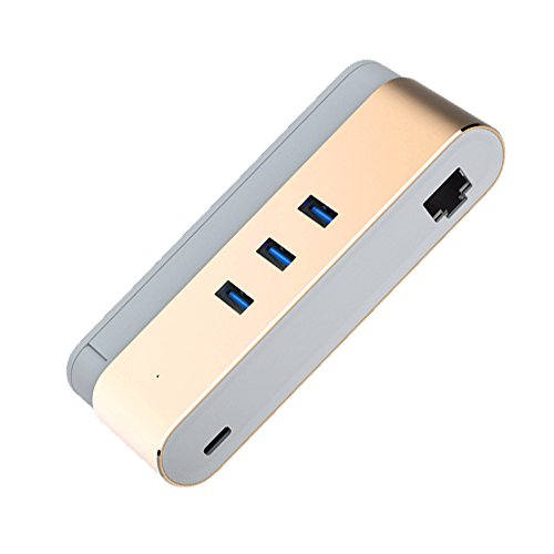 ElementDigital USB C Hub with RJ45 Gigabit Ethernet Network Adapter 3 Port USB 3.0 + USB C for for Macbook, Mac Pro / Mini, iMac, XP, Surface Pro, USB Flash Drives, Mobile HDD (Gold)