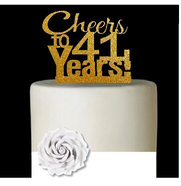 CakeSupplyShop Item#041CTA - 41st Birthday / Anniversary Cheers Super Gold Glitter Sparkle Elegant Cake Decoration Topper