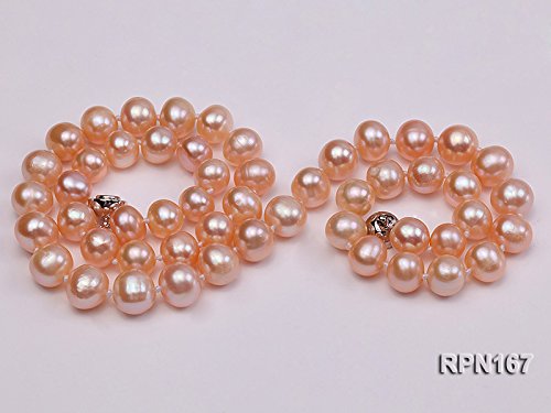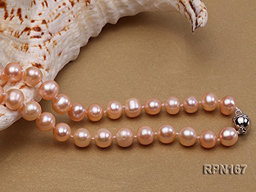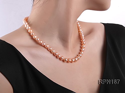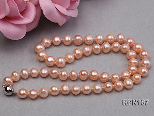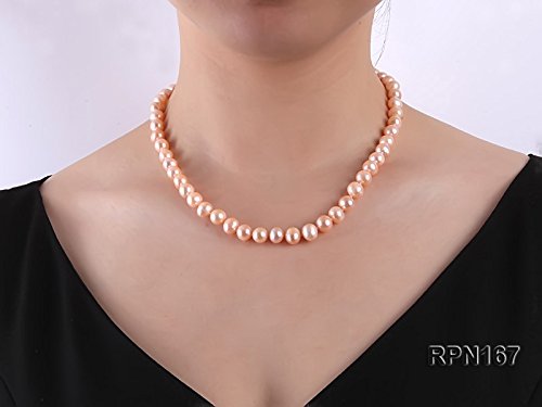 Pretty single-strand necklace made with 8-9mm natural pink round freshwater pearls.