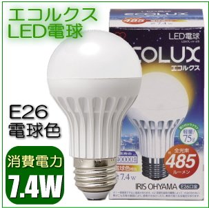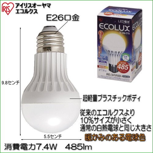● Product specification / light color: light bulb color, rated power consumption: 7.4 W, rated input current: 0.12 A, total luminous flux: about 485 lm, rated life: 40000 h, power supply: AC 100 V (50/60 Hz)