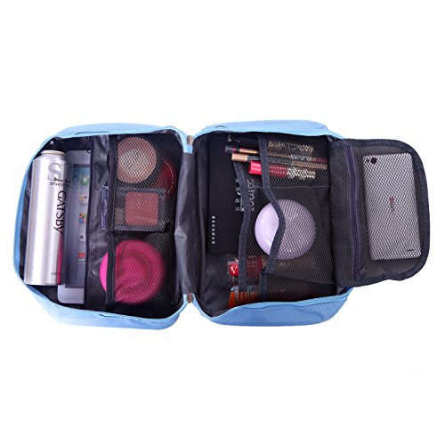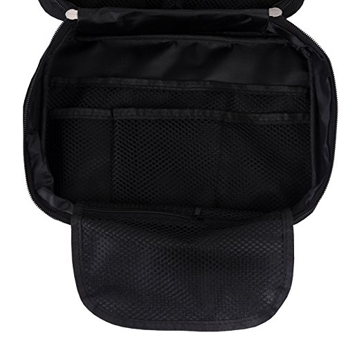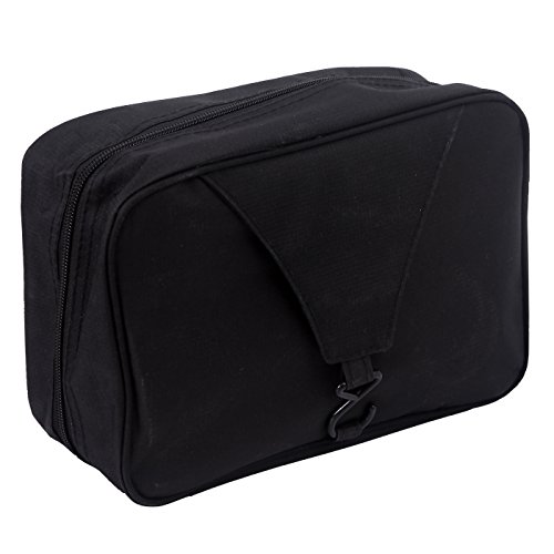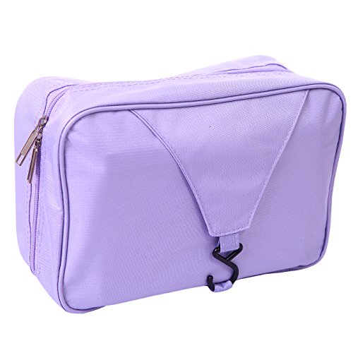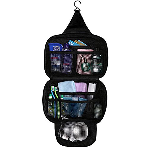 -. Feature : Exterior is water resistant; perfect for keeping near your sink or shower / Main compartment zips shut to keep it compact for packing l Has multiple soft mesh pockets / Built-in hook allows you to hang it from a shower rod, towel rack, or a door / Essential lage accessory for travelers, college students, and business professionals / Perfect for storing cosmetics, toiletries, first aid kits, or any other amenities