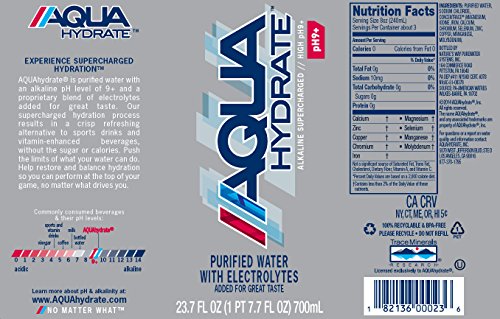 AQUAhydrate Electrolyte Enhanced Water Ph9+, 23.67 Fluid Ounce (Pack of 12)