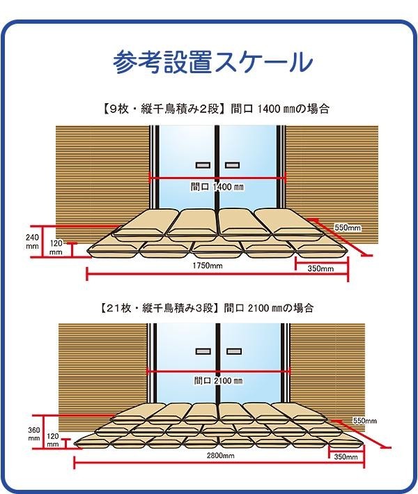 | 重量 | 1枚当たり/吸水前:約250g、吸水後(水道水の場合):約15kg 個装重量:6500g |
