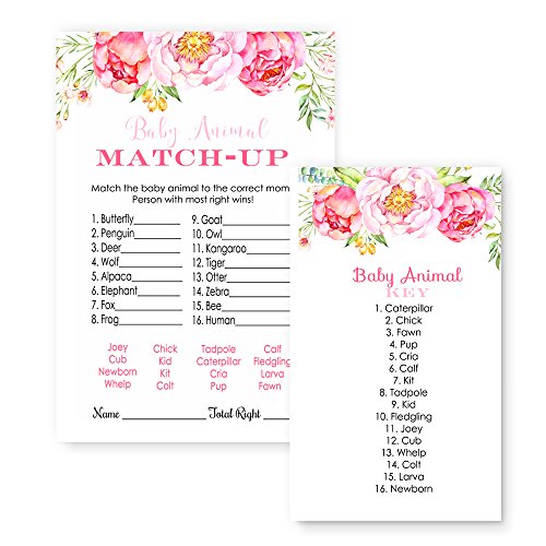 -. Feature : 4" inches by 6" inch game card pack of 25 / Game pack includes a master copy included sized at 2" x 3.5" / Gorgeous floral animal match game card, pink, blush and coral / Use for your girls baby shower, party or other events / USA Made