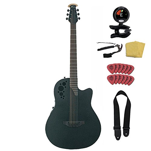 Product Description Designed to deliver fat, chunky tones in today's popular baritone and drop tunings. The Ovation D scale guitar is a true one of a kind. It's not your standard baritone. Tuned a full step lower to D-G-C-F-A-D, this guitar will fit easily into any style of music. Just capo the 2nd fret and you've got a standard tuned acoustic. Take off the capo and you've got a whole new instrument. The D scale will open up a world of possibilities for open tunings. With a scale length of 28 1/3", this guitar achieves the voicing of a baritone with the playing ease of a standard 6-string. The top is made of solid spruce with a lightweight textured black finish. A thin finish, along with scalloped bracing, maximizes top vibration and sustain giving the D scale a clear tone advantage. The D's neck is made from rock maple and finished in natural stain. This neck ain't bashful. The D scale is topped off in pure Ovation style with an OP Pro preamp and is mated with the Ovation high output pickup, which provides even string-to-string output with any string gauge and any open tuning The Mid-Depth bowl blends elements of Ovation's Super-Shallow and Deep Bowl designs. Acoustically, the Mid-Depth bowl delivers impressive projection and rich tone, yet even smaller guitarists find it comfortable to hold and play. Designed in collaboration with jazz guitarist Al Di Meola and acoustic rocker Melissa Etheridge, the OP-Pro combines state-of-the-art audio quality with exclusive features designed to meet the needs of professional guitarists. The easy-to-operate unit offers 3-band EQ, a preset tone enhancement circuit, a battery status light, and a chromatic tuner. The OP-Pro will please even the most discriminating player. 0