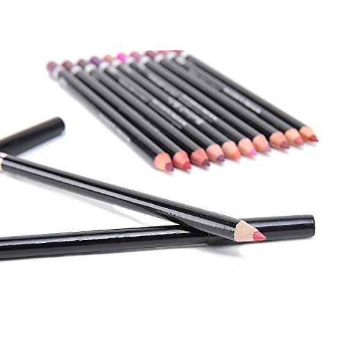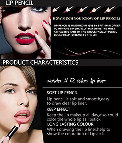 - 💙 Very pigmented, smooth, creamy and cute, glides on nicely. Blend well with lipsticks. 12 colors travel size (5.9inch) lip liner pencils. Make your lips look big.