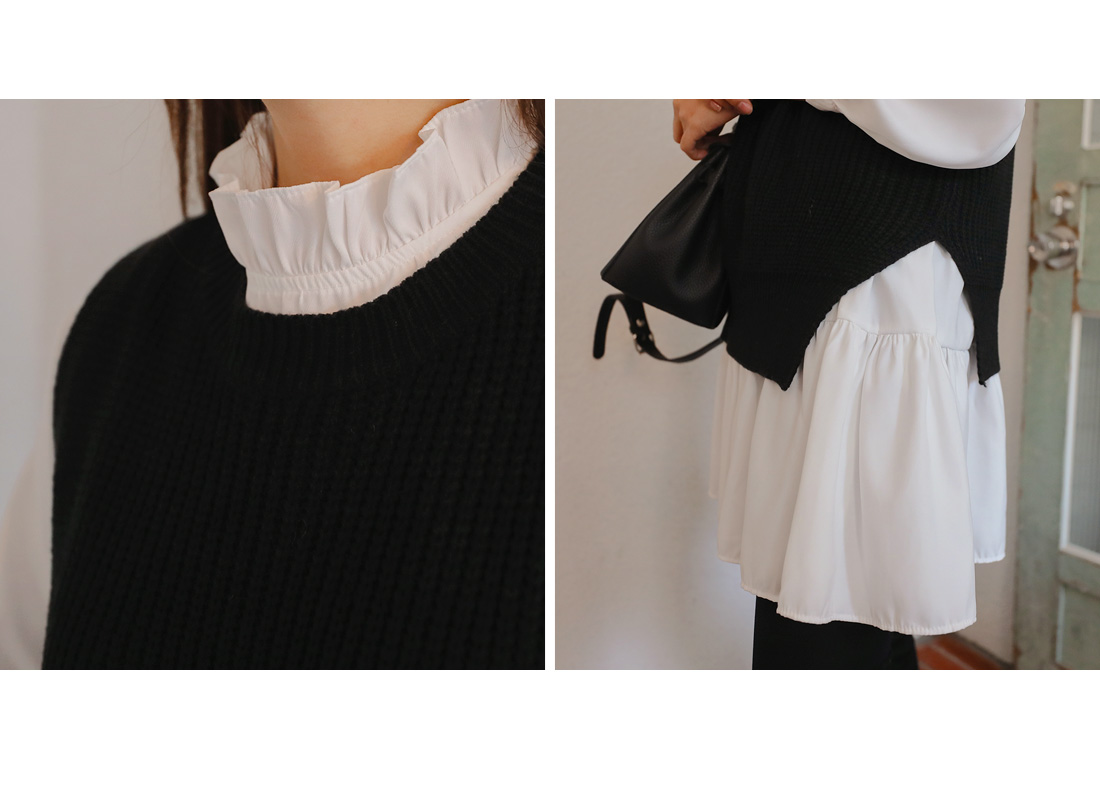 네크라인 위로 올라오는 프릴 디테일이 러블리한 분위기를 연출해줘요.