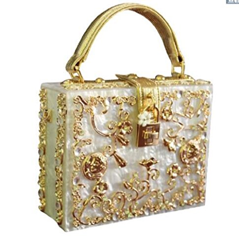 -. Title : Evalent Women's Elegant Rhinestone Flower Acrylic Box Evening Clutch Pearl Beaded Wedding Cocktail Evening Handbag