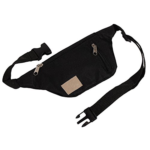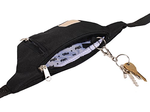 -. Feature : Travel fanny pack contains two pockets: a main body pocket and a front pocket to store an iPhone (without case) or other small mobile device. / Main pocket has a keyring inside to safely and securely store a set of keys. / Adjustable waist strap fits waists ranging in size from 26-36 inches around. / Stylish waist pack comes in 7 colors - black, green, yellow, red, brown, silver, and camo. / Fanny packs ship within 1-business day, guaranteed.