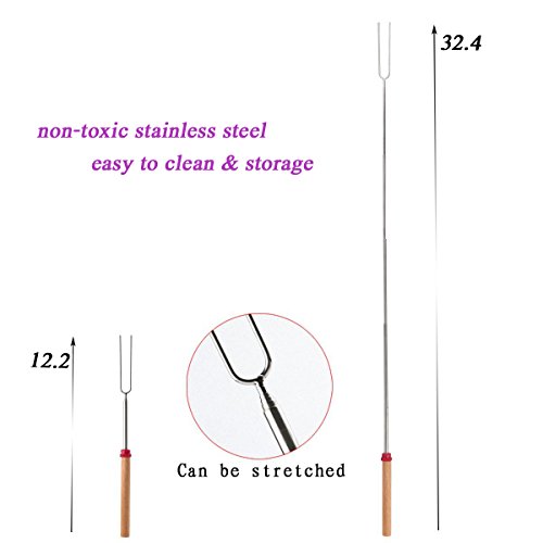 ✔ STRETCHABLE: Flexible design, can stretch from 12.2 inch to 32.4 inch. Free to lengthen and shorten. You don't need to fork delicious food in short distance any longer. Keep you free from dangerous oven and fire. Perfect for children to use them, let parents rest assured from then on. Telescoping retracting fork design convenient for camping trips, fishing trips, backpacking or storing at home. Packed by a yellow clothes bag, convenient for you to carry.