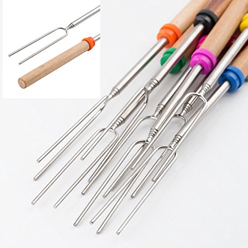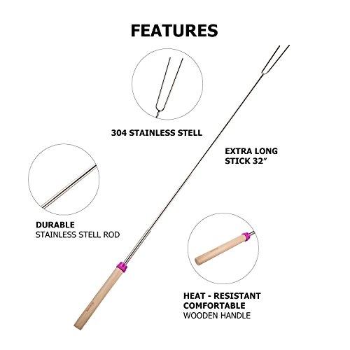 ✔ WOODEN HANDLE: Are you afraid the forks would burn your hands? Our roasting sticks with natural wooden handle, anti-hot, no burr. Easy to clean, and convenient to store. Rigorous structure only considers your happy experience!