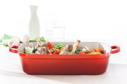 Le Creuset Signature Cast Iron Rectangular Roaster, 7.0-Quart, Cerise (Cherry Red)