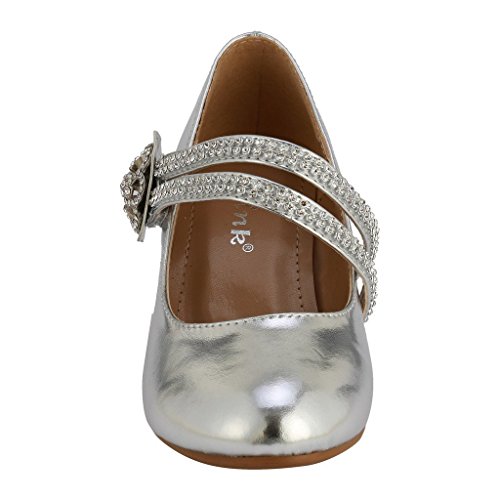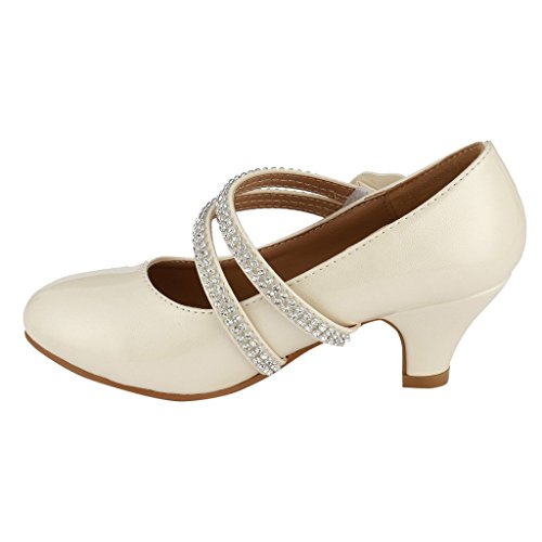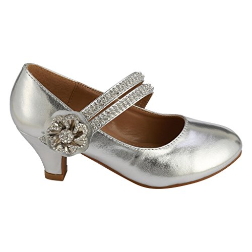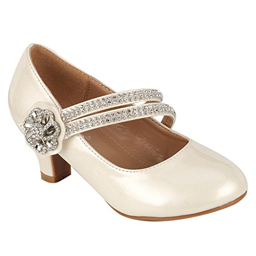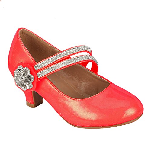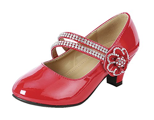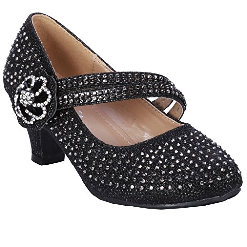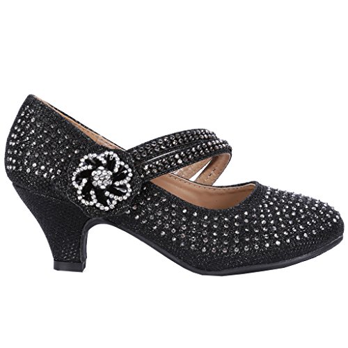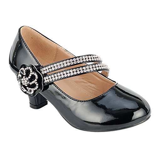 | Coshare Girl's Fashion Little Heel Rhinestone Mary Jane Floral Dress Pumps |