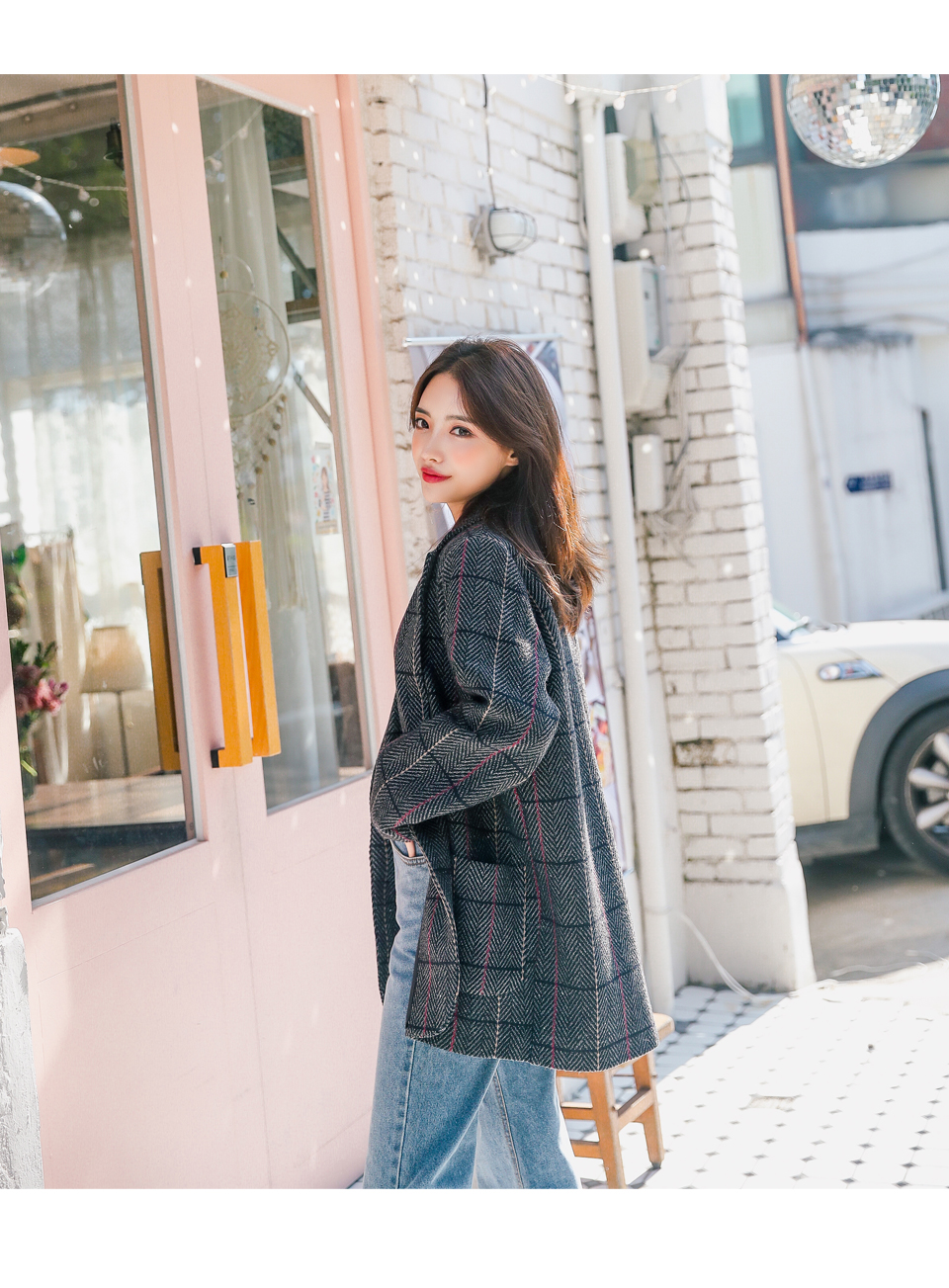 촘촘한 체크 패턴과 포인트가 되는 컬러로 밋밋함 없는 자켓,