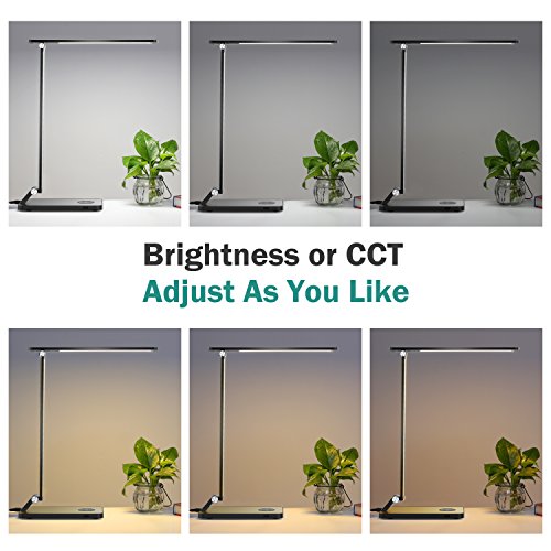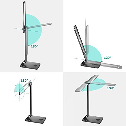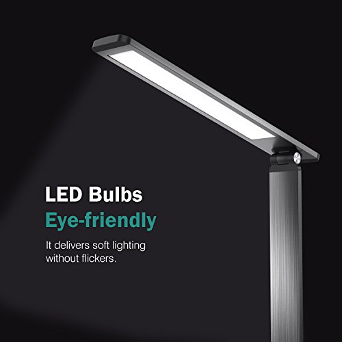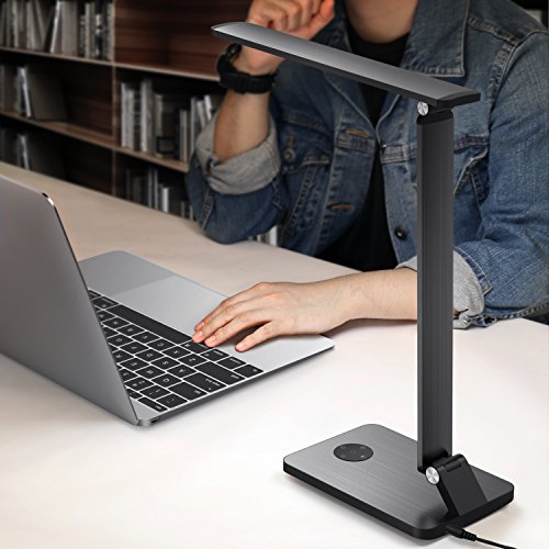 MoKo LED Desk Lamp, Smart Touch Stylish Metal Table Lamp, Rotatable Home Office Lamp with Stepless Brightness/Color Temperature, USB Charging Port, Memory Function, Sleep Mode - Space Gray