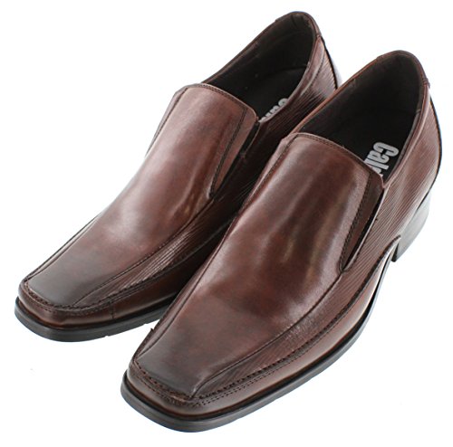 CALDEN - G60703 - 2.8 Inches Taller - Height Increasing Elevator Shoes-Brown Slip-on Square-toe